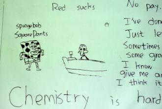 臺灣大考中心昨天舉行指考考生違規會議,考生在答卷畫上海綿寶寶的圖案。圖片來源:臺灣《聯合報》