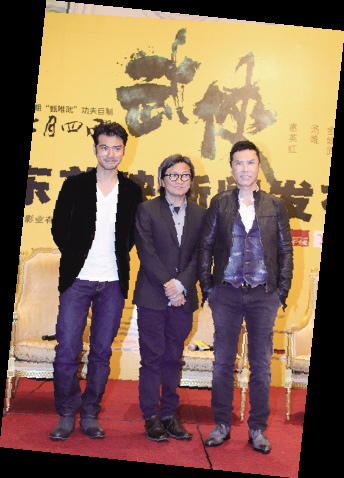 金城武與陳可辛、甄子丹宣傳電影《武俠》。資料圖