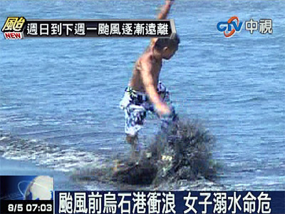 臺風前烏石港沖浪,女子溺水命危。圖片來源:臺灣“今日新聞網”