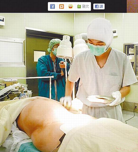 不知被拍攝的產婦躺在產臺上,醫護人員正在她肚皮上消毒。圖片來源:臺灣媒體