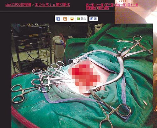 產婦剖腹后,竟沒有醫護人員在旁執行手術,任由“berry”拍下畫面。圖片來源:臺灣媒體