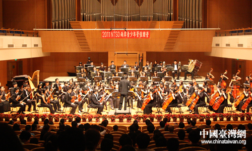 百名兩岸青少年音樂菁英共同組建的“2011 兩岸青少年管弦樂營”在北京音樂廳演出。(中國臺灣網 黃艷艷 攝)
