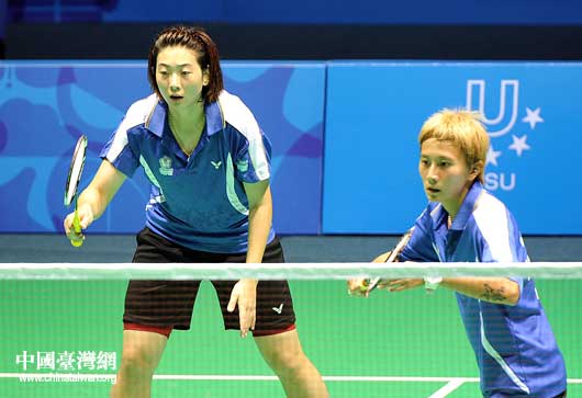 白驍馬(左)與鄭韶婕在女雙決賽中對(duì)陣韓國(guó)選手。(中國(guó)臺(tái)灣網(wǎng) 劉海偉 攝)