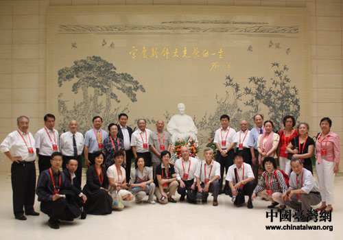 黃埔軍校同學會的老校友與親友們在宋慶齡先生像前合影。(中國臺灣網 李丹 攝)