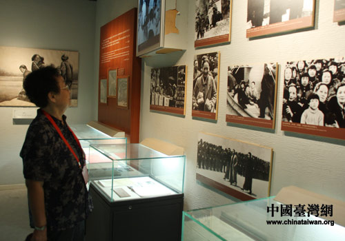 航空工業計劃局原副局長,左權將軍之女左太北觀看宋慶齡與中央托兒所的老照片。(中國臺灣網 李丹 攝)