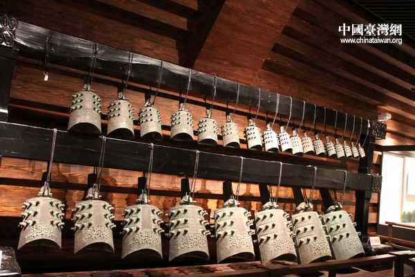 王孫誥甬鐘編鐘,是我國目前發(fā)現(xiàn)的春秋時期數(shù)量最多、規(guī)模最大、音域最寬、保存最好的編鐘,在中國音樂史上占據(jù)重要地位。(中國臺灣網(wǎng) 芮益芳 攝)