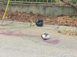 命案現(xiàn)場,兩人的安全帽還在地面上。圖片來源:臺灣《聯(lián)合報》