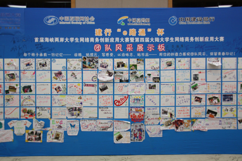 活動現場的團隊風采展示板,展現了兩岸大學生在此次活動中的精彩歷程。(中國臺灣網 芮益芳 攝)