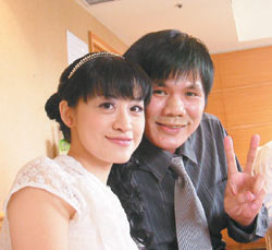 臺(tái)灣從事廣告設(shè)計(jì)的cosplay迷馬家儀(左)、林芳妤,以硬紙板制造日本動(dòng)漫《機(jī)動(dòng)戰(zhàn)士》人物,作為結(jié)婚禮服。圖片來自臺(tái)灣媒體