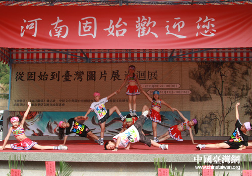 臺灣小朋友在“從固始到臺灣圖片展”巡回展開幕式上的表演。(圖片來源:《兩岸關(guān)系》雜志社)