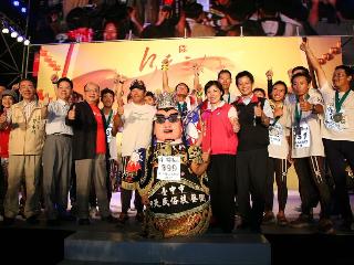 臺(tái)灣“青輔會(huì)”負(fù)責(zé)人李允杰為團(tuán)員們送上《那一刻,我們改變了世界》一書,而臺(tái)中市長胡志強(qiáng)也送上“臺(tái)灣之光“獎(jiǎng)牌及每位團(tuán)員一雙新球鞋,胡志強(qiáng)也發(fā)揮幽默長才說,世界各國1星期有7天,而臺(tái)灣地區(qū)有“九天”,引起全場大笑。(中國臺(tái)灣網(wǎng) 張真瑜)