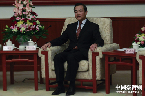 20日下午,中共中央臺辦、國務院臺辦主任王毅在天津會見臺灣海基會董事長江丙坤一行,圖為王毅在會見中致辭。(中國臺灣網 陳佳慧 攝)