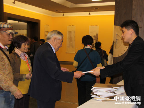 現(xiàn)場贈閱筑臺兩地書畫藝術(shù)家作品集。(貴陽臺辦胡珊珊 攝)