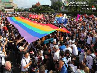 亞洲規(guī)模最大的同性戀游行,29日在臺北凱達格蘭大道上盛大登場,許多臺灣民眾也一同參加。 (圖片來源于臺灣媒體)