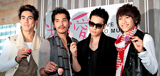 白梓軒(左起)、藍正龍、周湯豪、毛弟4位男主角昨為《粉愛粉愛你》亮相宣傳。(圖片來源:臺灣《聯合報》)