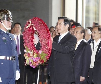 中國(guó)臺(tái)灣網(wǎng)11月24日消息 據(jù)臺(tái)灣“中央社”報(bào)道,今年是中國(guó)國(guó)民黨建黨117周年,國(guó)民黨主席馬英九24日前往孫中山紀(jì)念館,向?qū)O中山銅像獻(xiàn)花致敬。