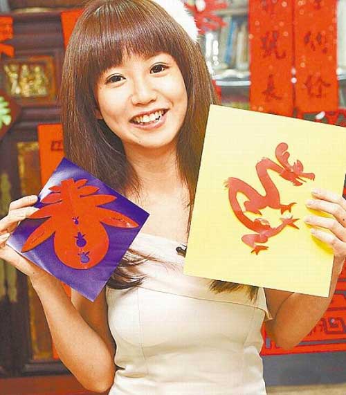 龍年學剪紙 宅男女神郭書瑤嬌嗔喊:桃花不能剪(圖)