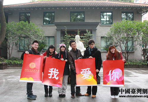 臺灣學生和大陸高校志愿者在上海宋慶齡故居內合影。(中國臺灣網 栗琰 攝)