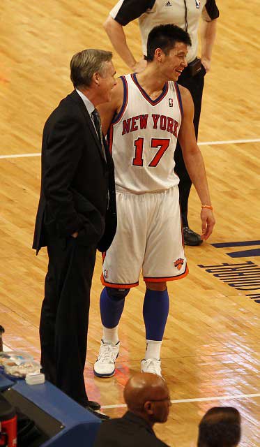 姚明認(rèn)為林書豪(圖)撞墻期在明年。圖片來自臺(tái)媒