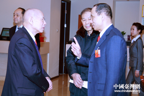 兩會代表委員在黃埔軍校同學會兩會代表、委員聯誼招待會上交談。(中國臺灣網 王偉 攝)
