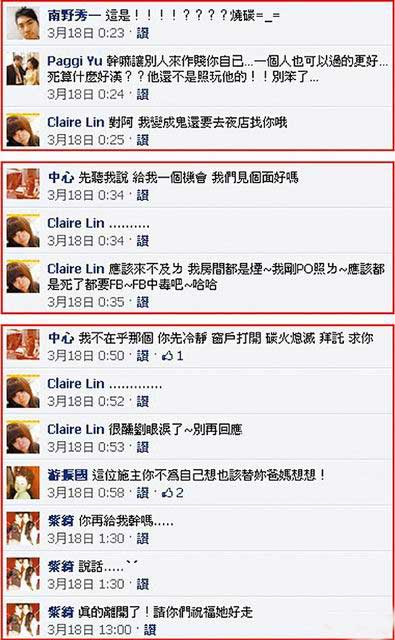 網絡直播燒炭 對話節錄。圖片來自臺媒
