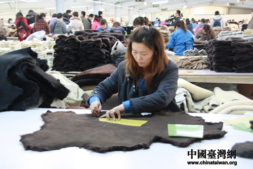 維信的女工正在裁剪毛皮。(中國臺灣網 王怡然 攝)