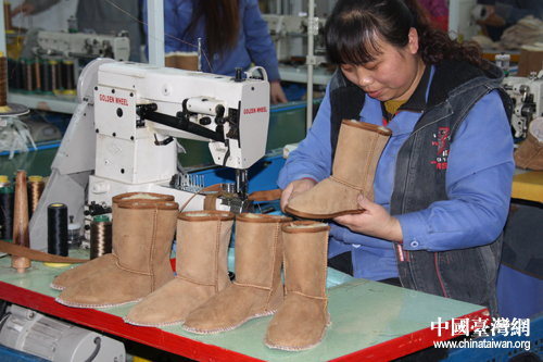維信生產線上的毛靴制品。(中國臺灣網 王怡然 攝)