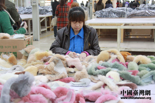 維信的女工在分揀毛皮材料。(中國臺灣網 王怡然 攝)
