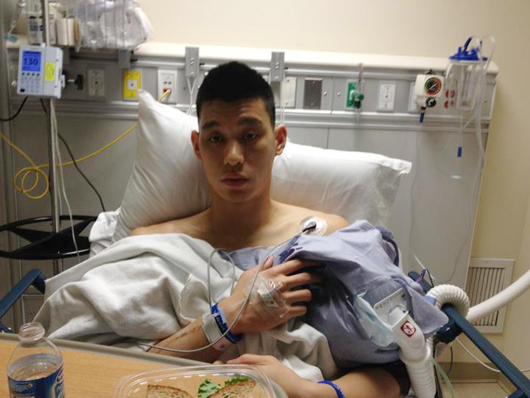 林書豪手術后看起來相當疲憊,氣色并不好。 來源:林書豪facebook