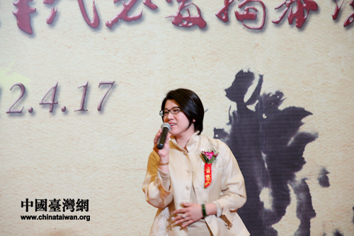 臺灣工業銀行集團策略長駱怡君在揭幕儀式上致辭。(中國臺灣網 楊麗 攝)