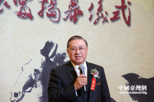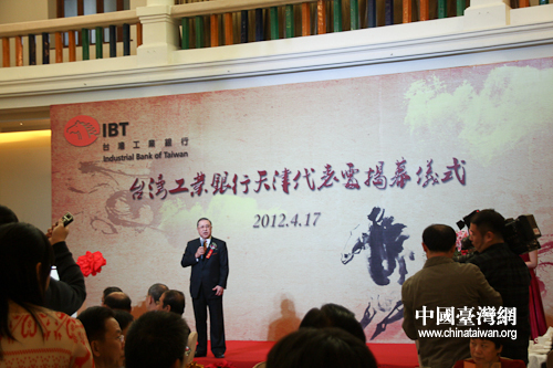臺灣工業銀行董事長駱錦明在揭幕儀式上致辭。(中國臺灣網 楊麗 攝)