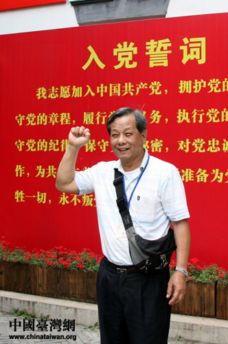 一位臺(tái)胞親身體驗(yàn)“入黨宣誓”的過(guò)程。(中國(guó)臺(tái)灣網(wǎng) 劉承思 攝)