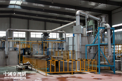 元泰達沫鋁廠是一家以生產泡沫鋁的高科技朝陽企業。這是一家援建項目,也是災后廣元在恢復中推進轉型升級的成功實踐。圖為該企業生產線。(中國臺灣網 楊麗 攝)