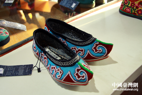 這種羌族繡鞋,女子一生只能在出嫁時穿一次。鞋上的云朵圖案,在羌族文化中寓意著吉祥如意的美好祝福。(中國臺灣網(wǎng) 楊麗 攝)