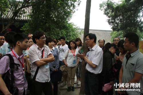 解說員向采風團講解少林寺典故。(中國臺灣網 于斯文 攝)
