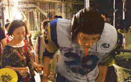 楊佑寧(右)因武行出手太重真的噴血,當場掛彩。圖片來自臺媒