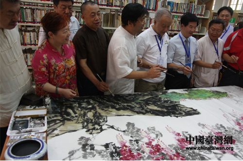 兩岸畫家合作創作的大幅國畫(中國臺灣網 蕪同 攝)