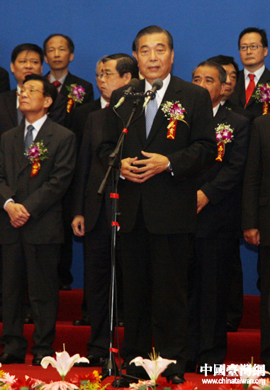中共中央政治局委員、天津市委書記張高麗,全國政協副主席鄭萬通,中共中央臺辦、國務院臺辦主任王毅,中國國民黨副主席蔣孝嚴等領導、嘉賓出席開幕式。(中國臺灣網 王思羽 攝)