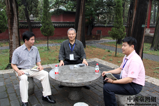 嘉賓們坐在孟廟里懷古論今,體悟先賢之道。(中國臺灣網 芮益芳 攝)