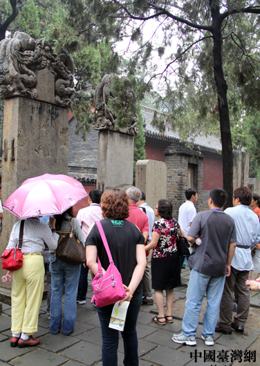 臺灣嘉賓參觀孟廟,聽取工作人員的講解。(中國臺灣網 芮益芳 攝)