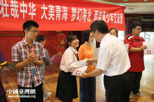 北京市臺辦副主任高振生向本次交流營活動表現優異的學生頒發證書(中國臺灣網 趙輝 攝)
