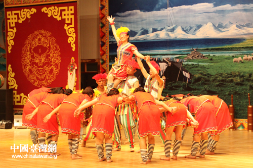 臺灣忠信學校學生表演的“原住民”舞蹈將開幕式晚會推向高潮(中國臺灣網 趙輝 攝)