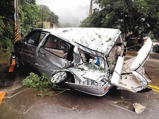 中國臺灣網8月2日消息  據臺灣《聯合晚報》報道,臺風蘇拉挾帶強風暴雨襲臺,今天除臺東外,島內各縣市均停班停課,但在一線報道臺風災情的媒體記者卻照常工作,甚至深入危險的山區采訪。今天清晨,臺灣“壹電視”一部采訪車在新竹縣橫山鄉與尖石鄉交界、120線28公里處被巨石砸中,車后半部全被砸毀,當時2名記者剛好下車采訪,車上只有一名司機,幸運的是車毀人平安。