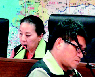 嘉義縣長張花冠(后排左)昨晚現(xiàn)身主持蘇拉緊急應變中心會議。來源:臺灣《聯(lián)合報》