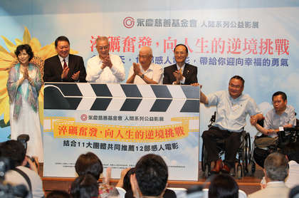 吳敦義(左三)出席“人間系列”公益影展開幕記者會(huì)。
