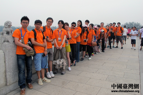 十七孔橋上,同學們憑“欄”一望。(中國臺灣網 張潔 攝)