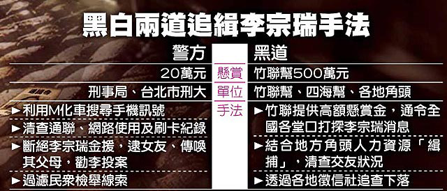 黑白兩道追緝李宗瑞的方法(圖片來(lái)自臺(tái)媒)