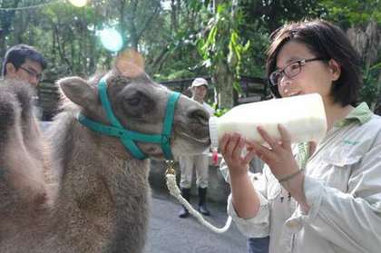 中國臺灣網10月10日消息 據臺灣媒體報道,臺北市立動物園臉書(facebook)在上周發了一張照片,一位短發女子穿著動物園制服,正在喂一只小駱駝喝奶,但許多網友看到這張照片后,不禁懷疑:“是蔡英文(民進黨前主席)養駱駝嗎?”
