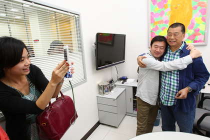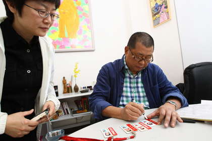 辦公室內外大排長龍等著黎智英簽名合照。圖片來源:臺灣媒體