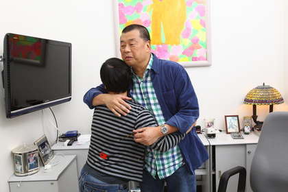 員工擁抱黎智英。圖片來源:臺灣媒體